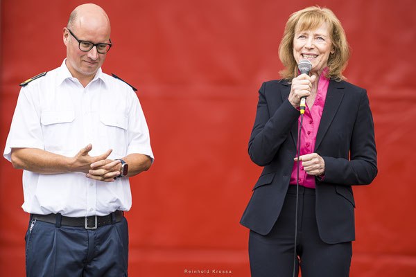 Bereits kurz nach 10:00 Uhr strömten viele Interessenten in Richtung Feuerwehrgelände, um an dem Tag der offenen Tür teilzunehmen. Hier gab es vieles zu besichtigen, viele Aktionen für groß und klein und natürlich auch Verköstigung. Das Ganze wurde von dem Erfolgsteam von Radio Emscherlippe Timo Düngen und Vanessa Winkel aus 30 m Höhe moderiert. Wir waren leider nur kurz dort, da das nächste Event schon bevorstand, das SPD Sommerfest auf der Domplatte in Buer.