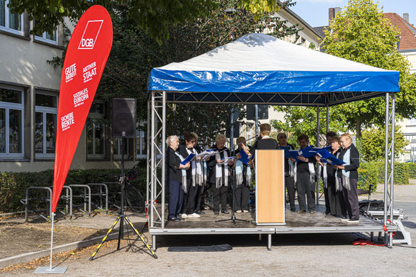 Ganz sicher wird niemand, der diese Konflikte befeuert, auf unsere Straßen und Plätze schauen. Dennoch ist es wichtig, dass wir in Deutschland auch öffentlich sagen: Wir wollen nicht in Kriegszeiten leben. Wir wollen und werden die Demokratie und das Völkerrecht verteidigen – und deshalb lehnen wir Krieg ab! Vielen Dank dem DGB und allen, die dabei waren!